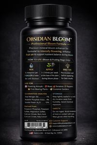 Obsidian Bloom™ is designed strictly for the flowering stage. Apply as a soil drench 1–2 times weekly once plants transition into bloom and continue through peak flower development.
